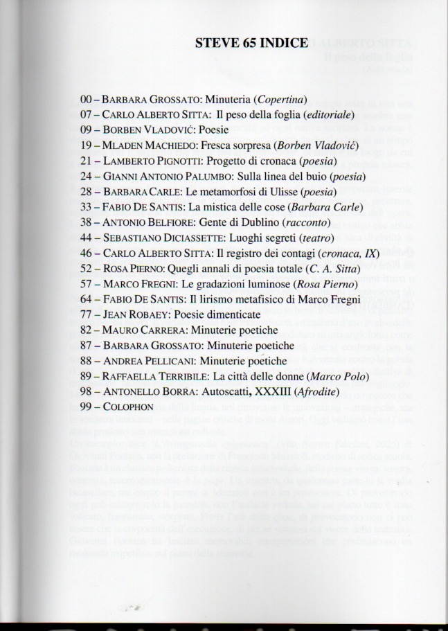 Each poem represents a small world in itself, but together they form a mosaic that reflects the complexity of human existence. The varying forms of the compositions, short and incisive to longer articulated ones, show the versatility of the poet, as when she describes the “tiella” dish from Bari with its “red onions from Aquaviva” or the irresistible New Yorker portraits: “Flabby slick / bubble gum bitch / trots into a faceless / shroud” rendered in Italian as: “Pingue con lacca / gonfia la bolla/la stronza di gomma / si squaglia nell’ombra.” Because, we have not yet said that the author translates herself with mastery, a very rare thing, indeed rather uncommon.